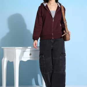 Alan Jones Clothing Women’s Solid Zipper Hooded Sweatshirt | Front Zip, Ribbed Hem, Lined Hood, Casual Winter Wear