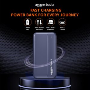 Amazon Basics 20000 mAh Power Bank | 22.5W Fast Charging | Dual Output & Input | Charge 3 Devices Simultaneously | for Smartphones, TWS Earbuds, Speakers, Tablets (Dark Blue)