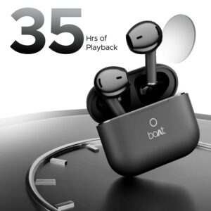 Boat Airdopes Joy, 35Hrs Battery, Fast Charge, IWP Tech, Low Latency, 2Mic ENx, Type-C Port, v5.3 Bluetooth Earbuds, TWS Ear Buds Wireless Earphones with mic(Jet Black)