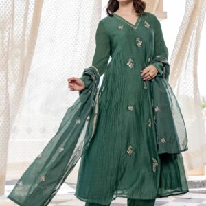 KLOSIA Women Embroidery Solid Anarkali Kurta and Pant Set with Dupatta