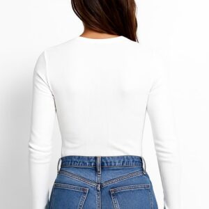 London Hills Women’s Solid Ribbed Long Sleeve Slim Fit T-Shirt | Stretchable Round Neck Top for Casual