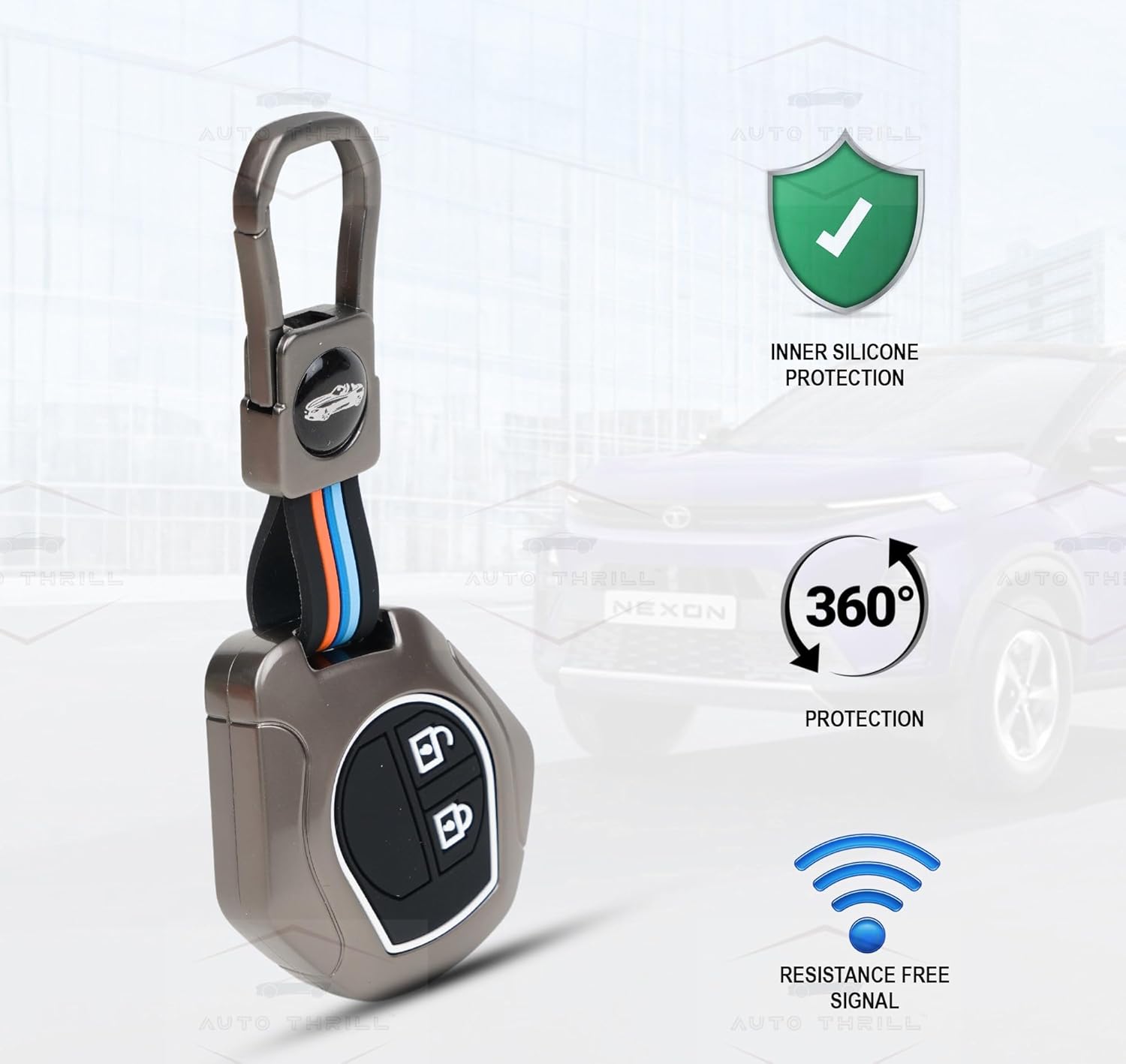 Upgrade your car’s style and protection with the AutoThrill Premium Transformer Series Waterproof Key Cover, specially designed for Suzuki 2-Button Remote Keys. Built with a rugged metal-finish shell and precision-moulded inner TPU lining, it offers full 360° protection against drops, scratches, dust, and water splashes. The transformer-inspired design gives your key a bold and modern look while maintaining perfect button responsiveness and signal strength. Compatible with popular Suzuki models including Swift, Ertiga, WagonR, Celerio, Dzire, Alto, Fronx, Brezza, S-Presso, and Ignis, it fits seamlessly without affecting key operations. Easy to install and crafted for long-lasting durability, this key cover ensures your car key stays secure, stylish, and premium every day.