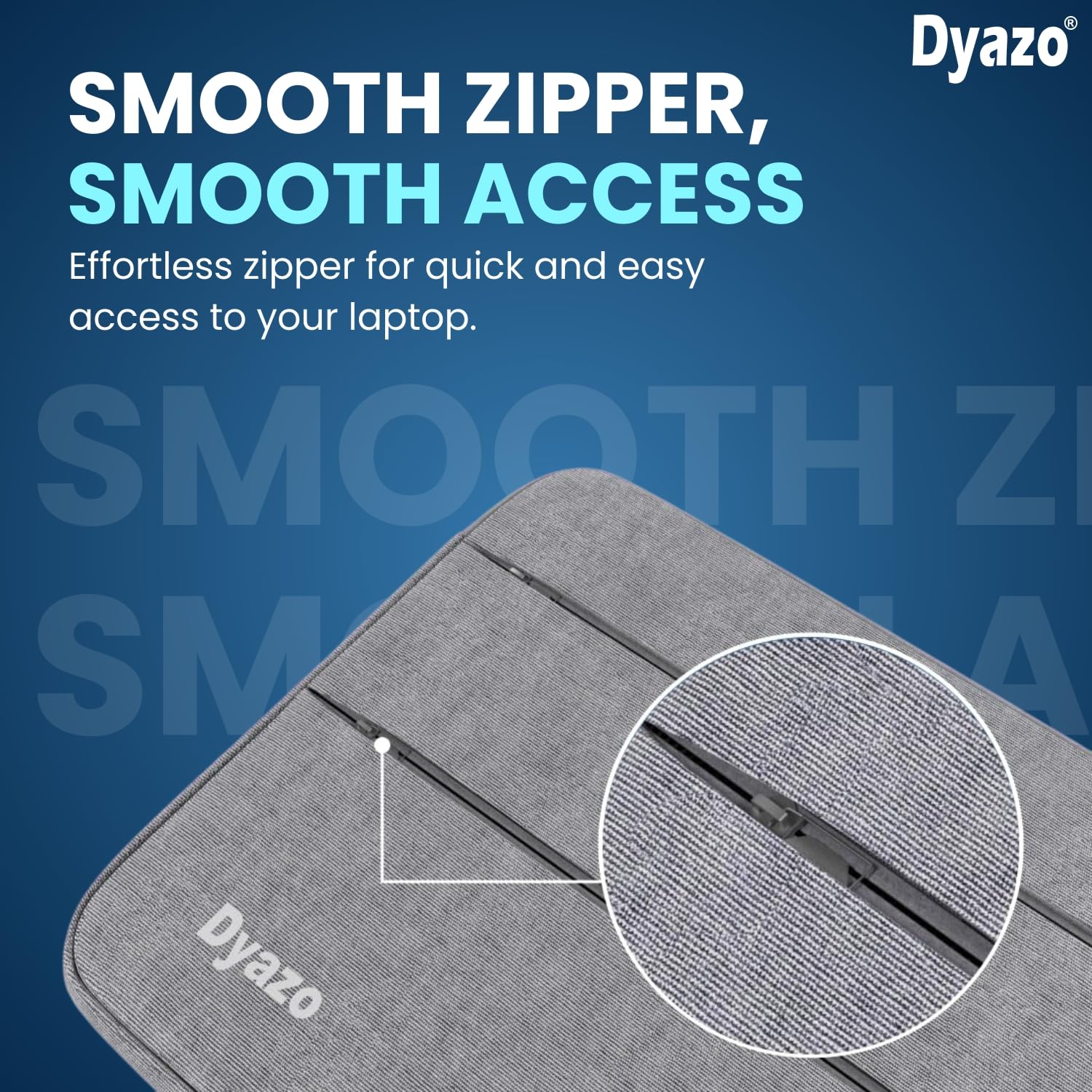 Velvet Interior for Protection The Dyazo laptop sleeve features a soft, thick velvet lining that acts as a shock absorber, offering excellent protection from bumps and scratches. This smooth interior ensures your laptop stays safe from damage while on the move. Durable Oxford Fabric Crafted from high-quality Oxford fabric, this laptop sleeve is designed to be water-resistant. Whether you’re caught in the rain or dealing with spills, your laptop will stay dry and protected from moisture and water damage. Two Front Zip Pockets Stay organized with two front zippered pockets, providing convenient storage for accessories like chargers, USB drives, external hard disks, and more. These compartments keep your essentials handy and neatly separated from your laptop. Top Handle for Easy Carrying The Dyazo sleeve includes a strong, ergonomic handle at the top, making it easy to carry your laptop sleeve like a briefcase. This well-positioned handle ensures comfort and convenience, allowing you to quickly grab and go.