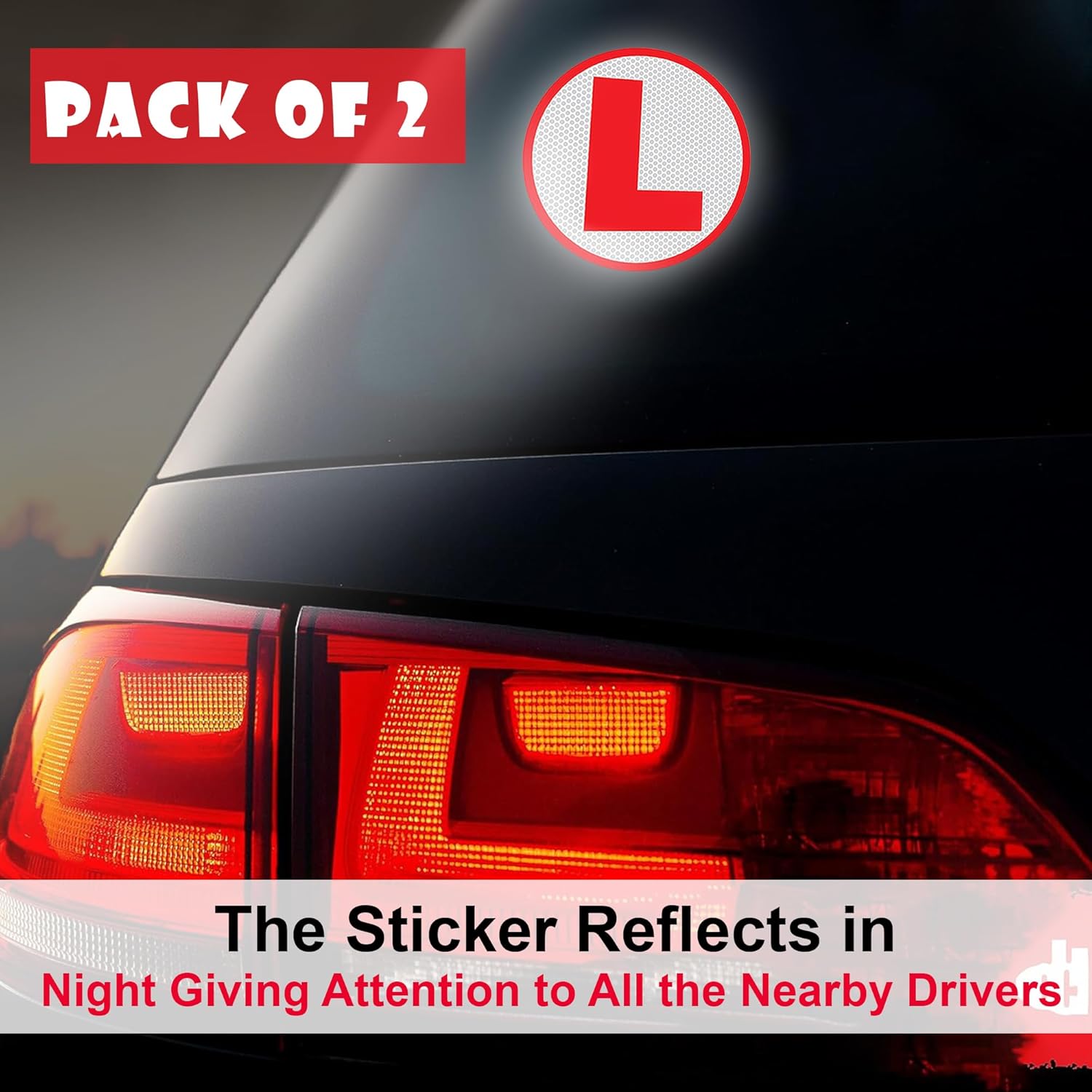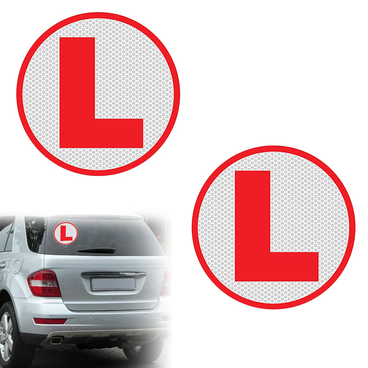 High Visibility & Reflective – Designed with a bold red “L” on a white background, these learner driver stickers ensure maximum visibility during day and night driving.
