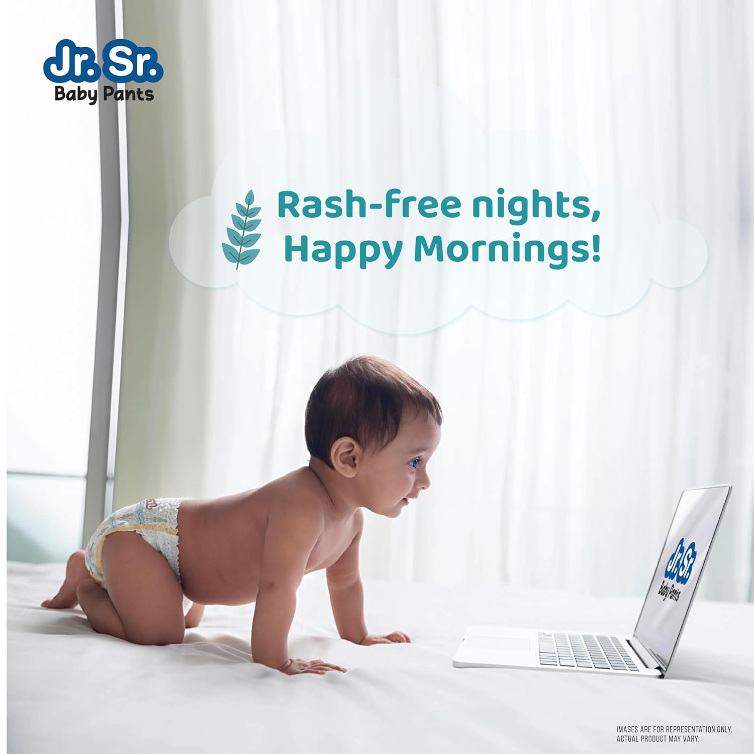 Jr. Sr. Baby Diaper Pants | Medium (M) Size (7-12 kg), 72 Count | Pack of 1 | Upto 12 hr Absorption with Advanced Leak Protection | Safe For Babies Skin | Soft, Secure & Comfy
