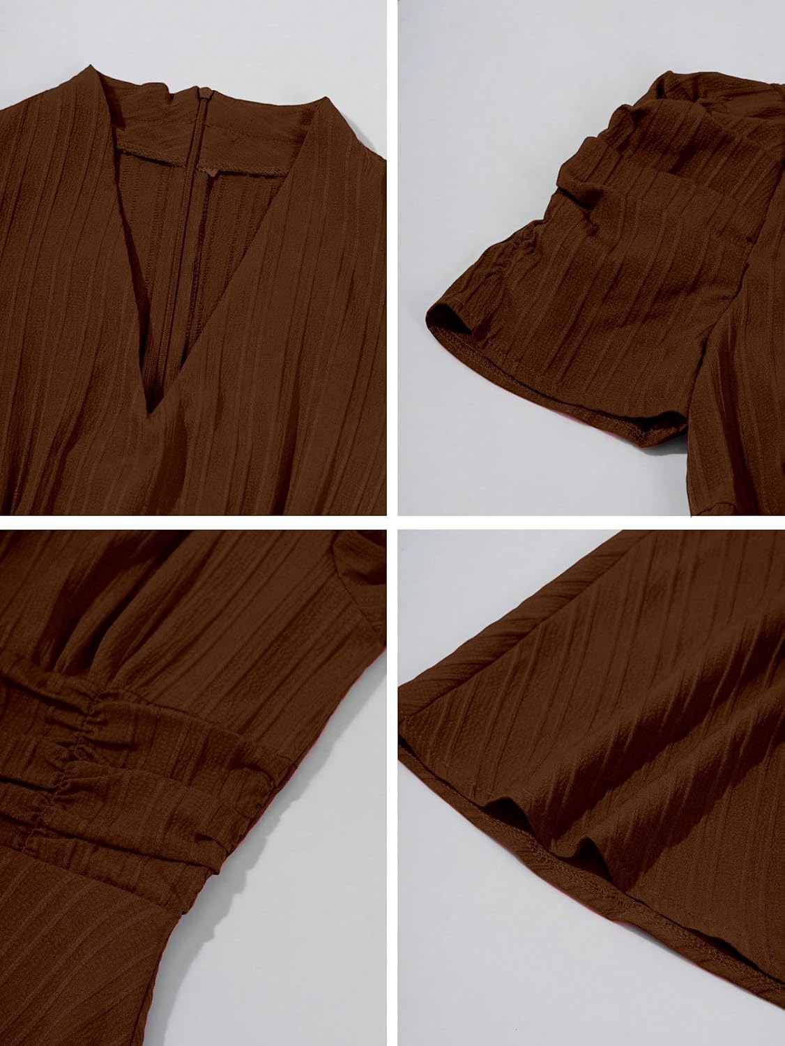Generic Name ‏ : ‎ Women’s V-Neck Maxi Dress, A-Line Style, Puff Sleeves, Cinched Waist